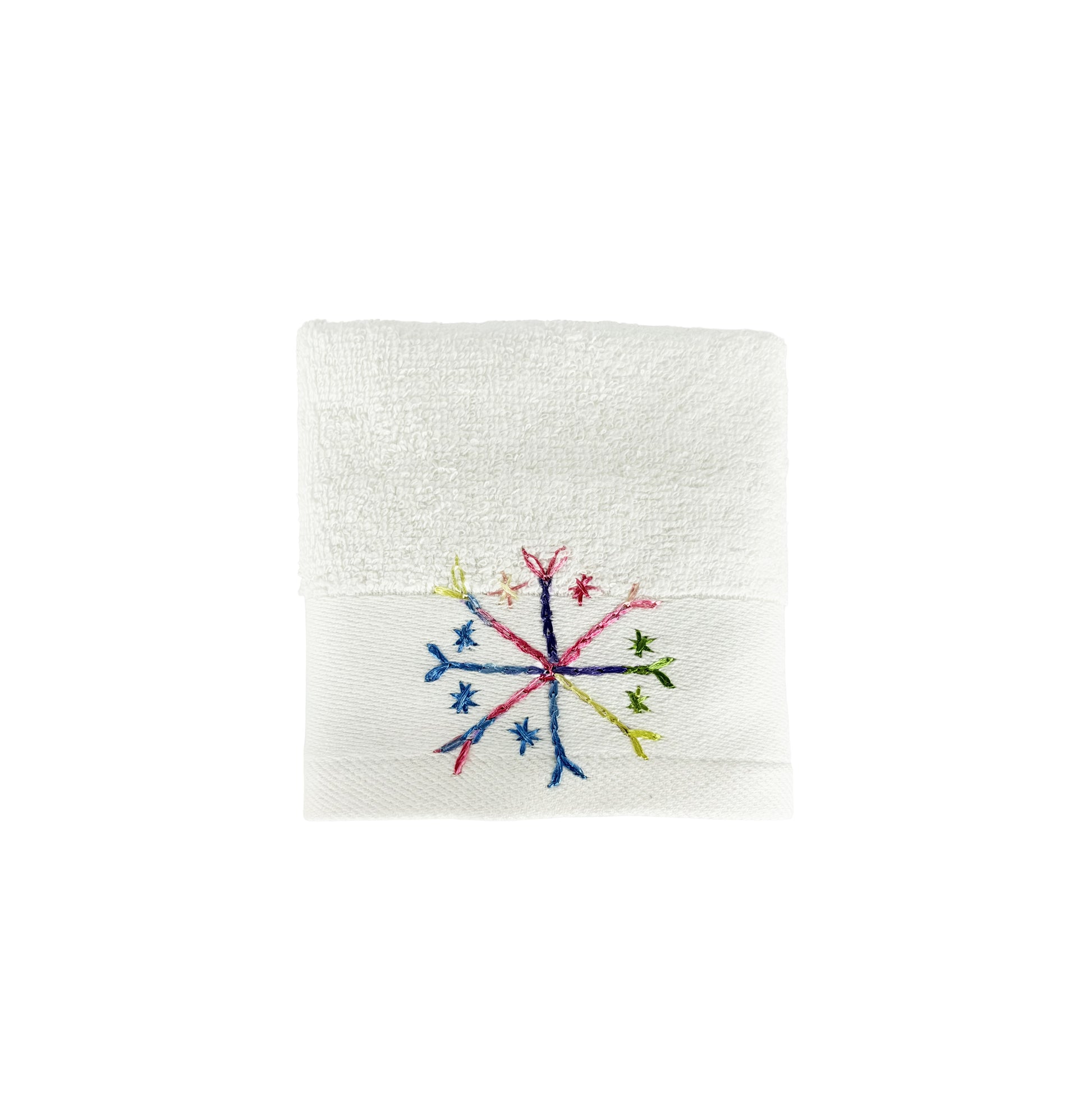 HAND EMBROIDERED Colorful Snowflake 100% Turkish Cotton Bath Towels, 4 piece Bundle, White.
