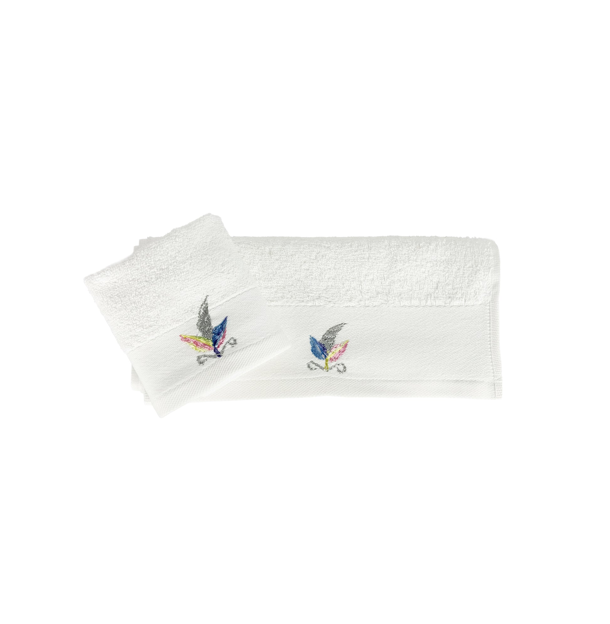 HAND EMBROIDERED Colorful Feather 100% Turkish Cotton Bath Towels, 4 piece Bundle, White.